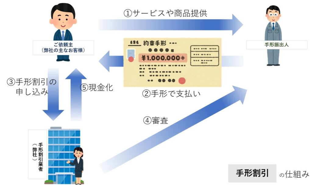 手形割引の流れ|手形割引プロは実績ある福岡の手形割引専門商社、リプルが運営。他社で断られた手形やお悩みの方は手形割引プロへ。九州、山口エリアなら当日現金化可能。